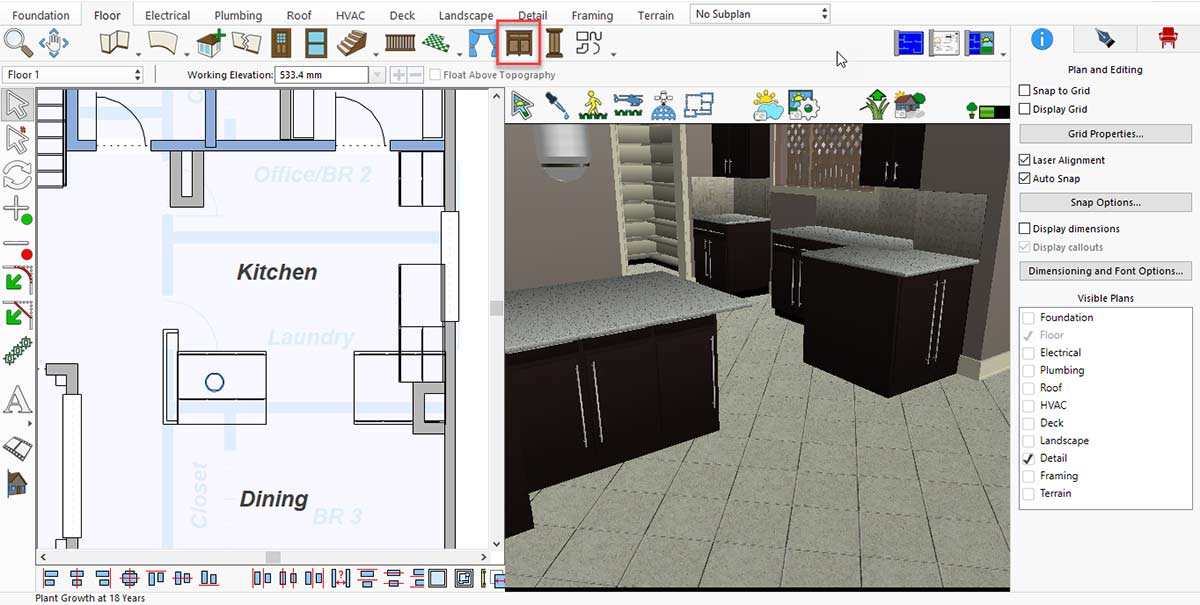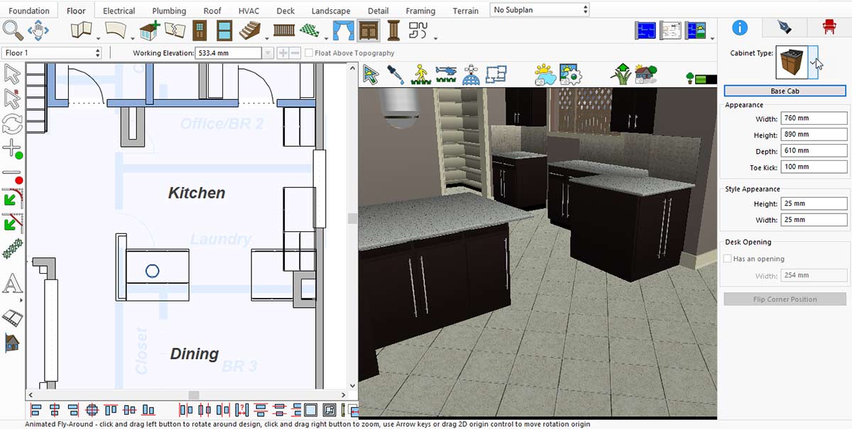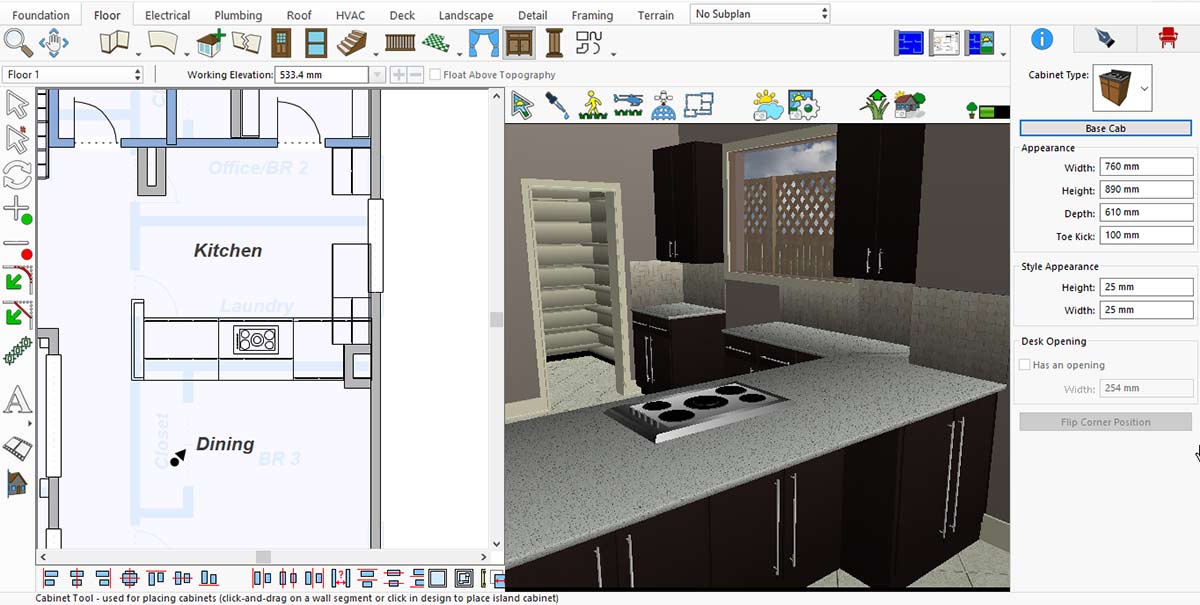 First, we will place the base cabinet. To do this, click on the Cabinet icon in the Floor menu.