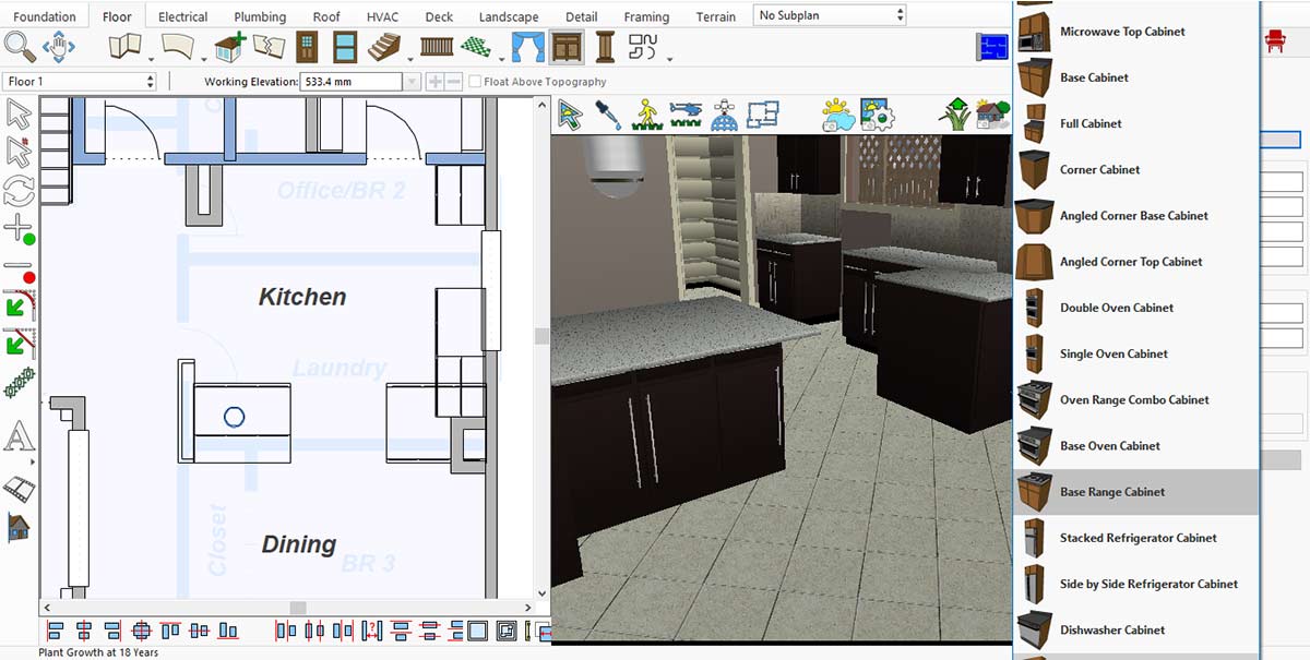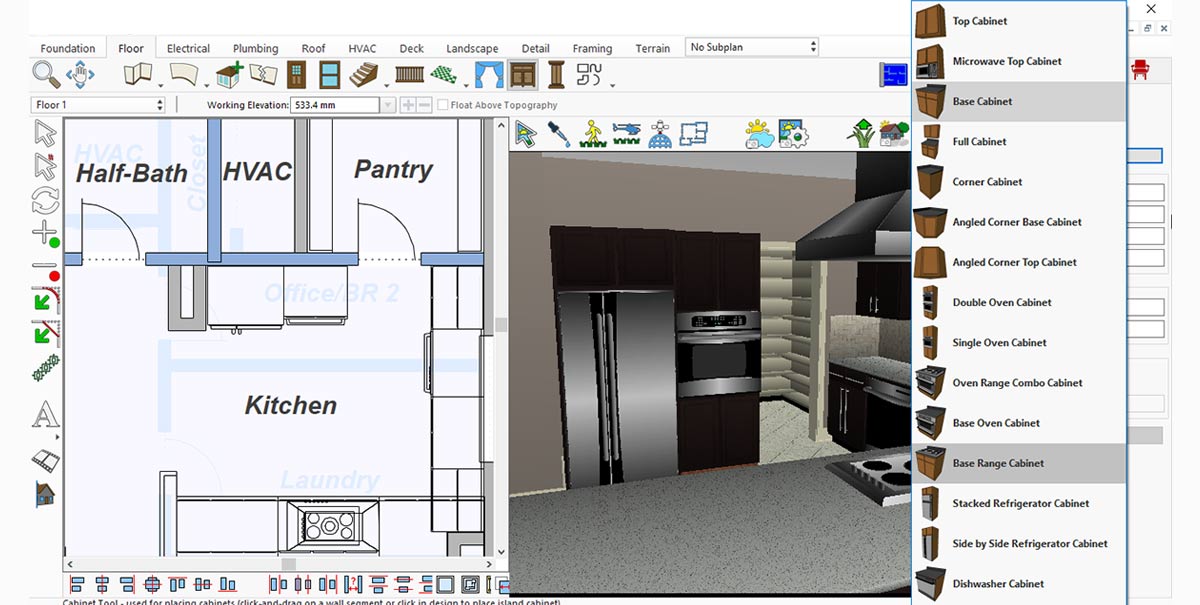 Now, to place a cabinet oven in your kitchen, first go to the Cabinet option in the Floor menu.