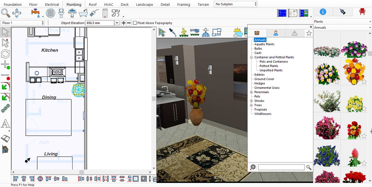 Now it’s time to add flowers to the pot. To do this, go to Plants > Display Stock Library Items > Annuals.